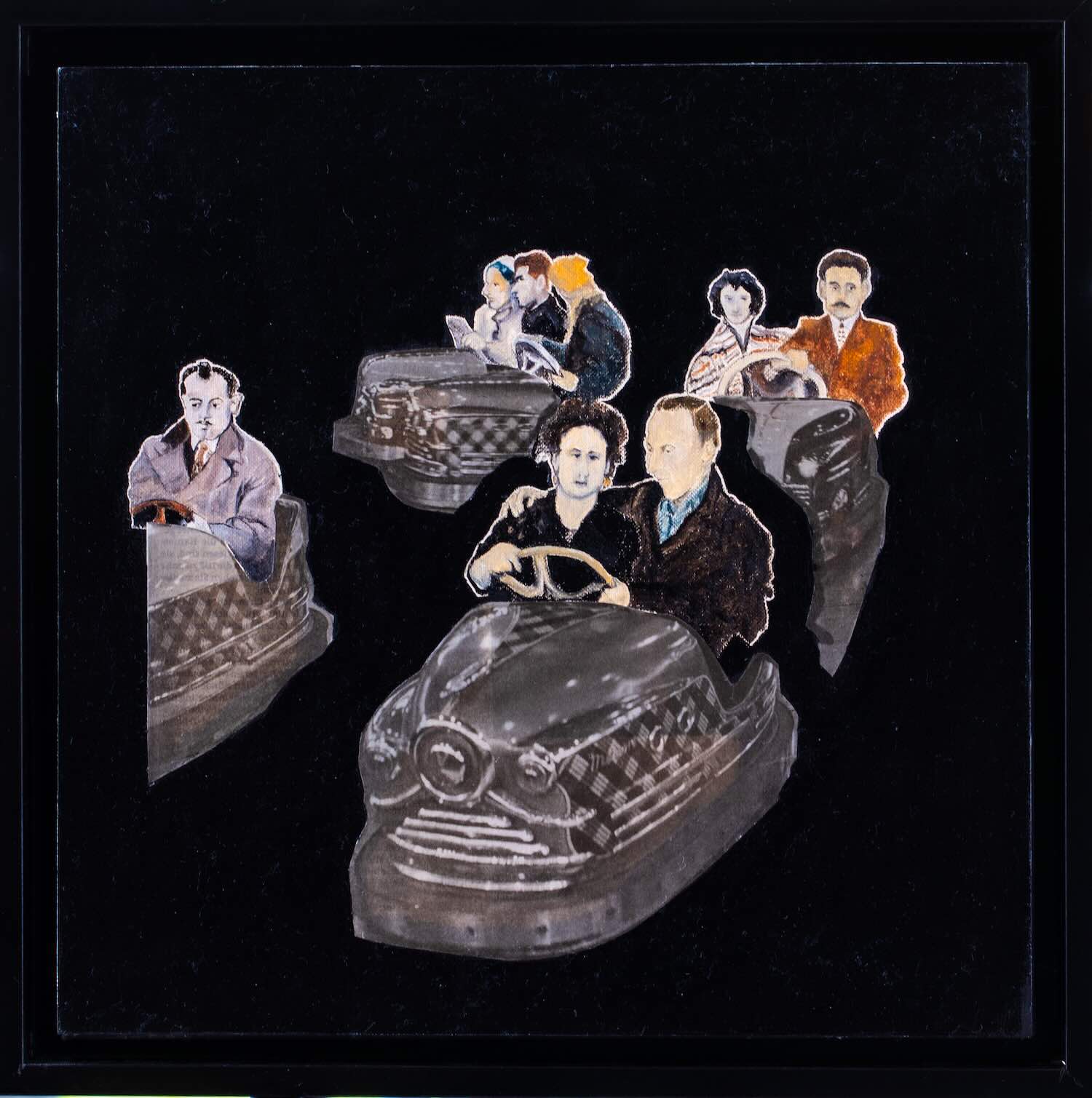No.96-2025 Autoscontro (Papiercollage/Ölbild, 33x33cm, mit Rahmen)