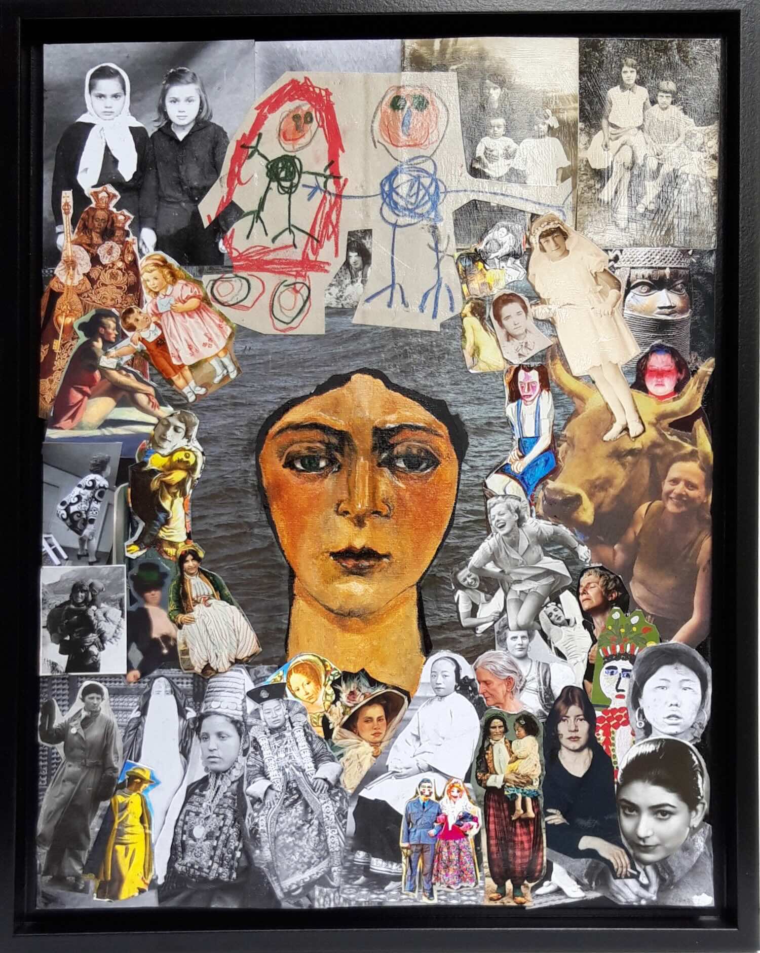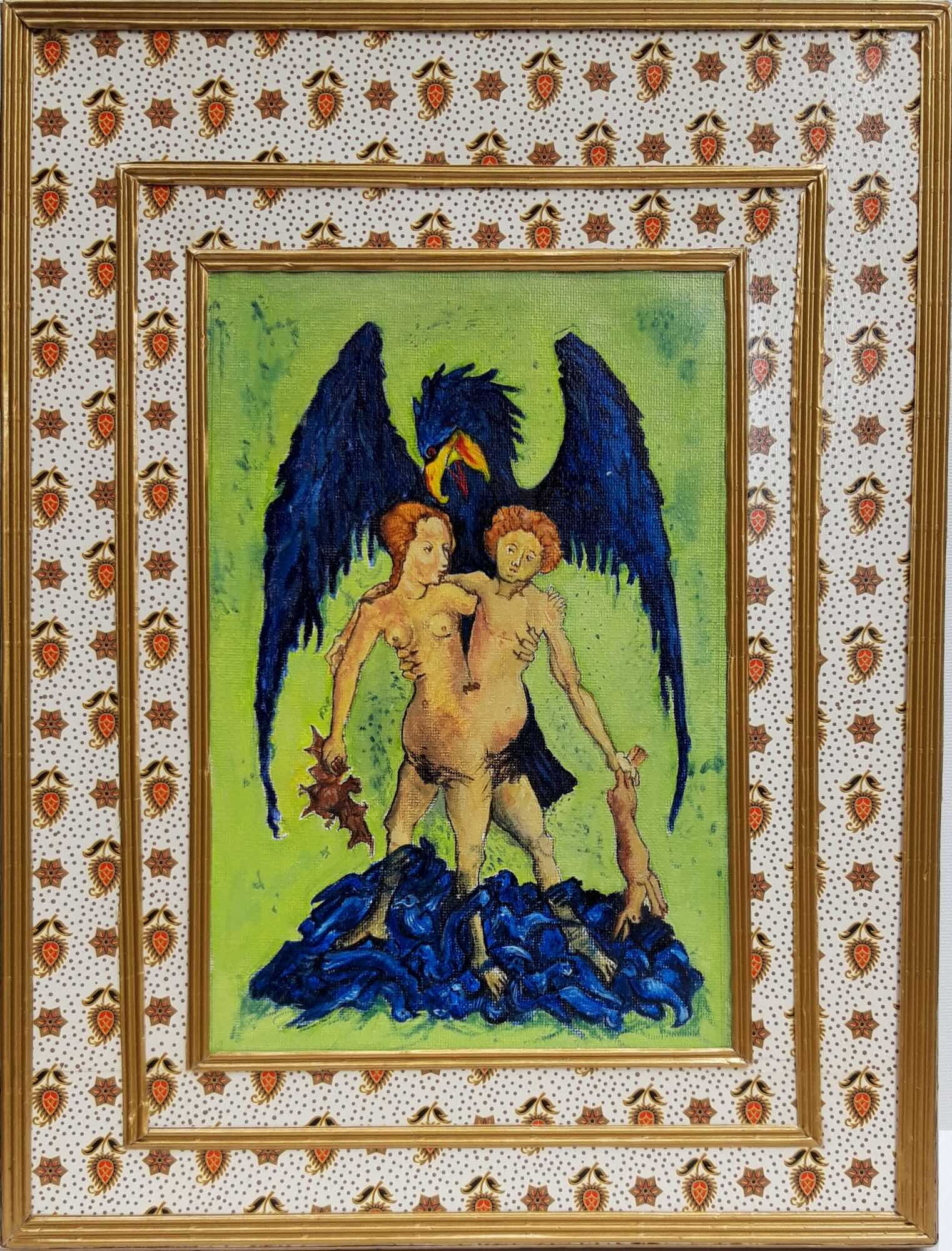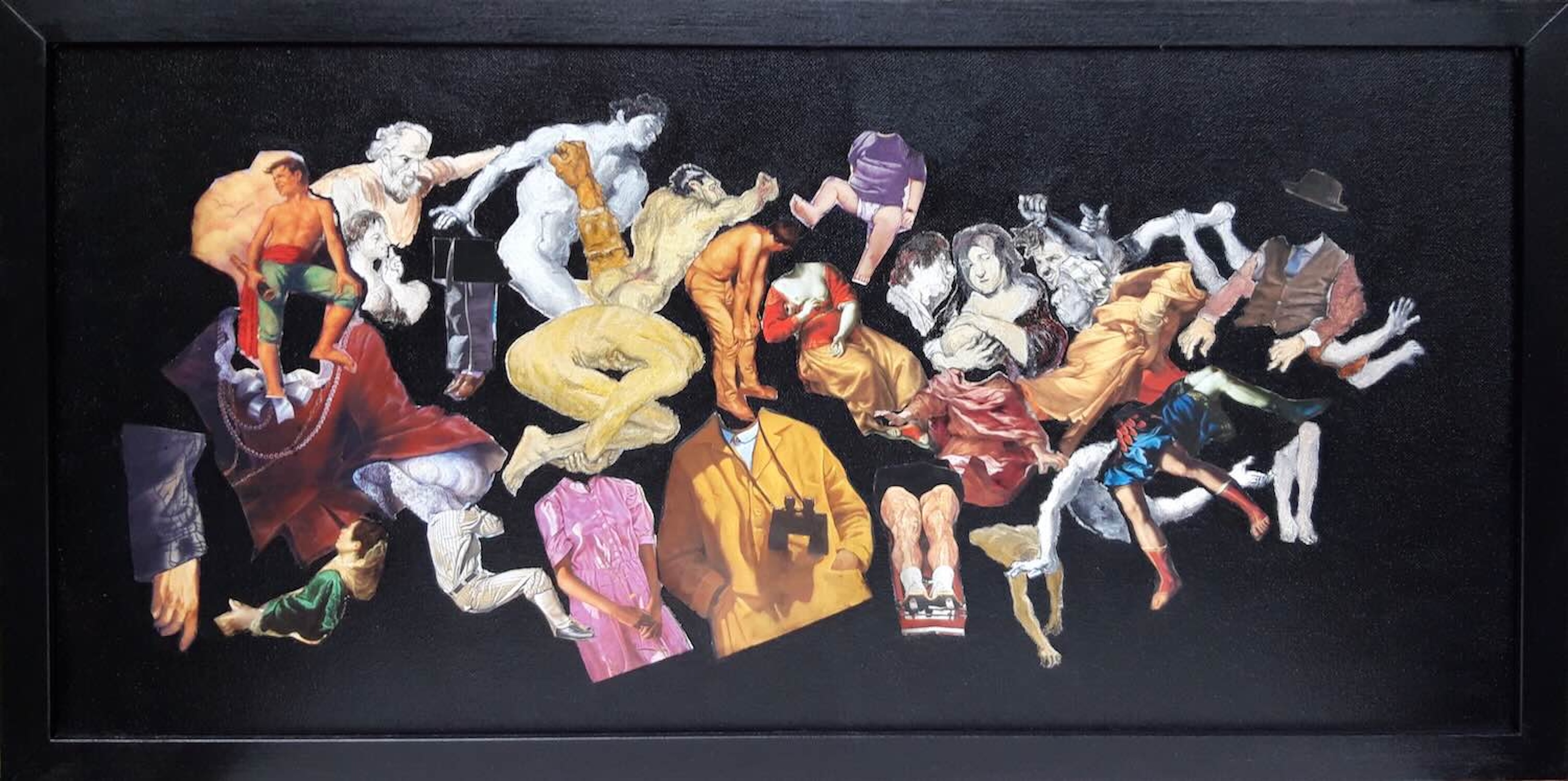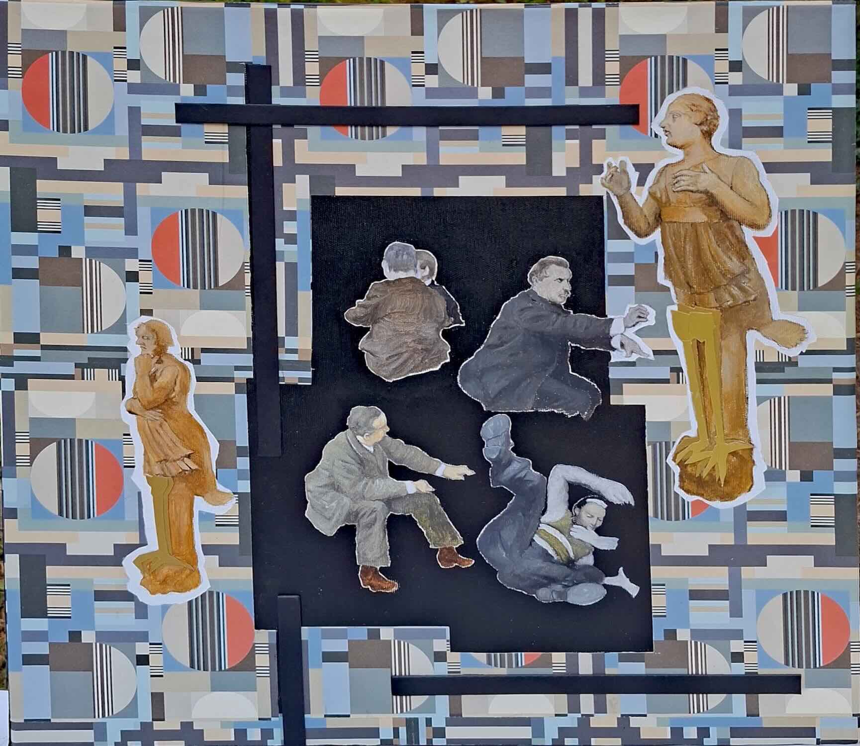 Ölbild No.97-2025 Die schreienden Frauen (Papiercollage/Ölbild, 44x54cm, mit Rahmen)